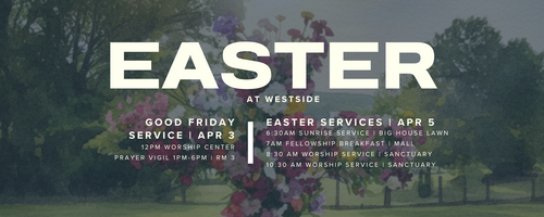 Join us this Easter Weekend (April 3-5, 2026) as we gather to reflect and rejoice in the hope, joy, and victory of Jesus’ resurrection. We will begin with a meaningful Good Friday service as we remember Christ’s sacrifice and prepare our hearts. Then on Easter Sunday, we’ll gather together to reflect on Christ's victory over death. Whether you’ve been part of our church for years or are visiting for the first time, there’s a place for you here. Bring your family and friends and experience the life-changing power of the resurrection. Check out the details below for all that’s going on!